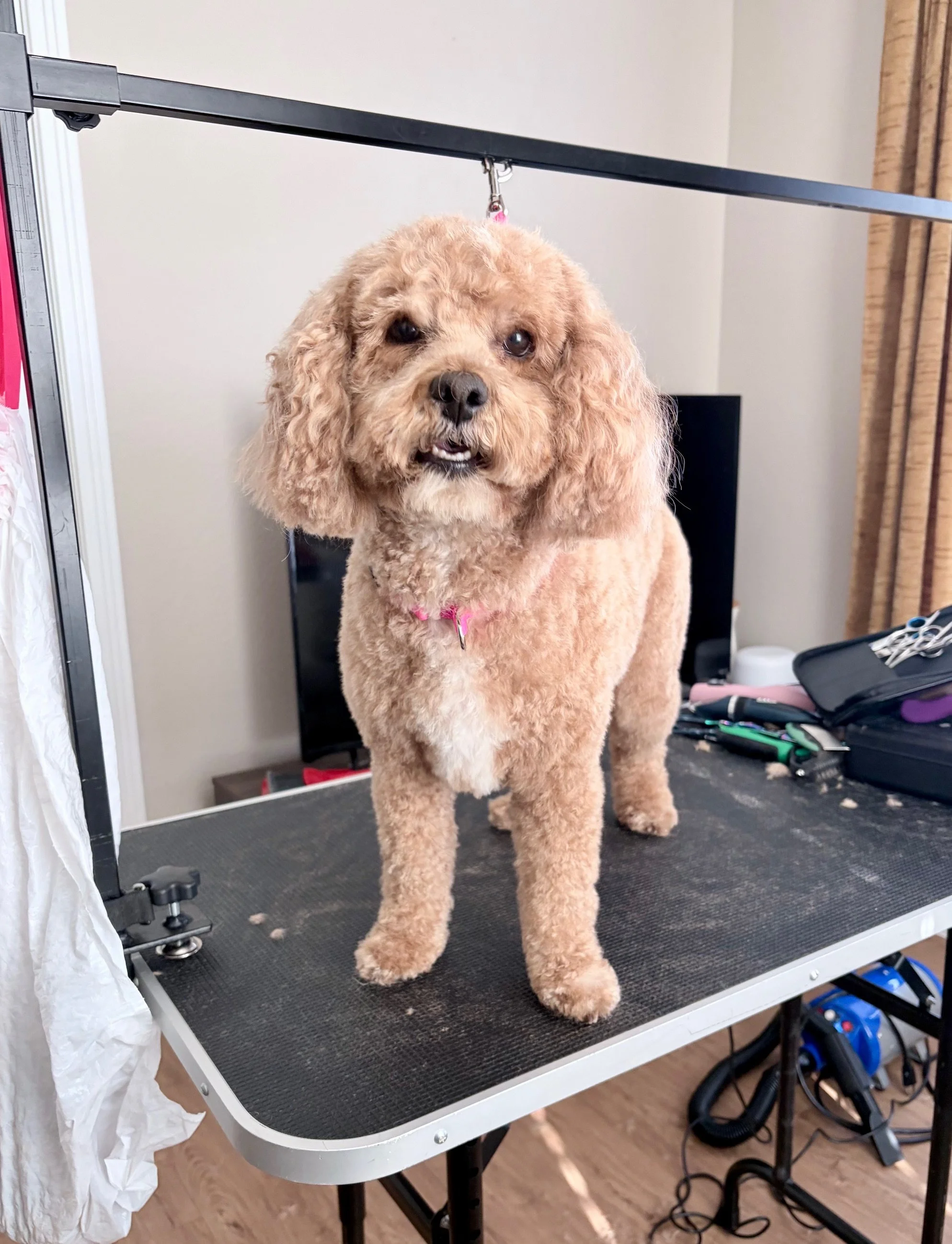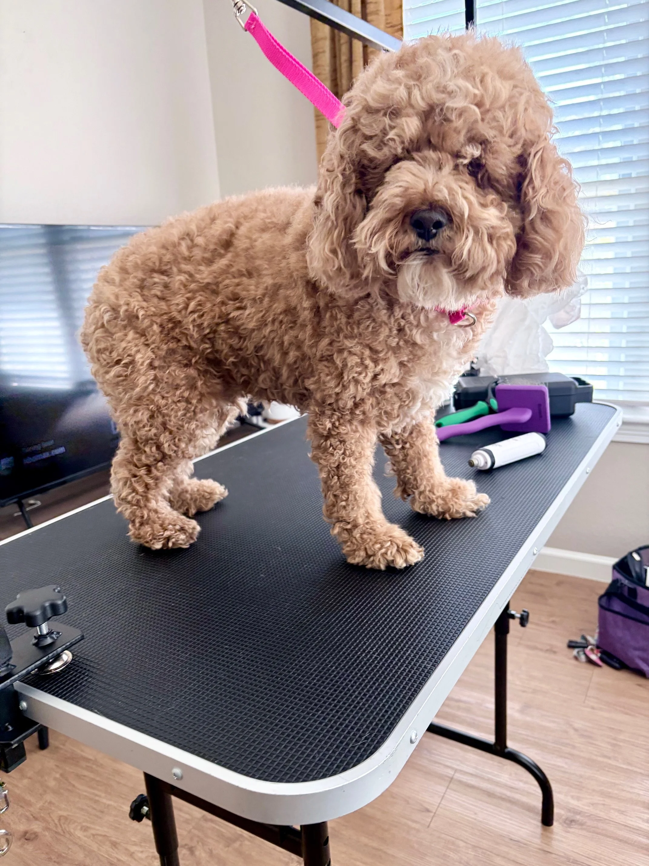 I offer house call grooming, doing services in your home (I would need to use a bathtub/sink and an area for my table) or I offer grooming at my apartment’s bathing station!